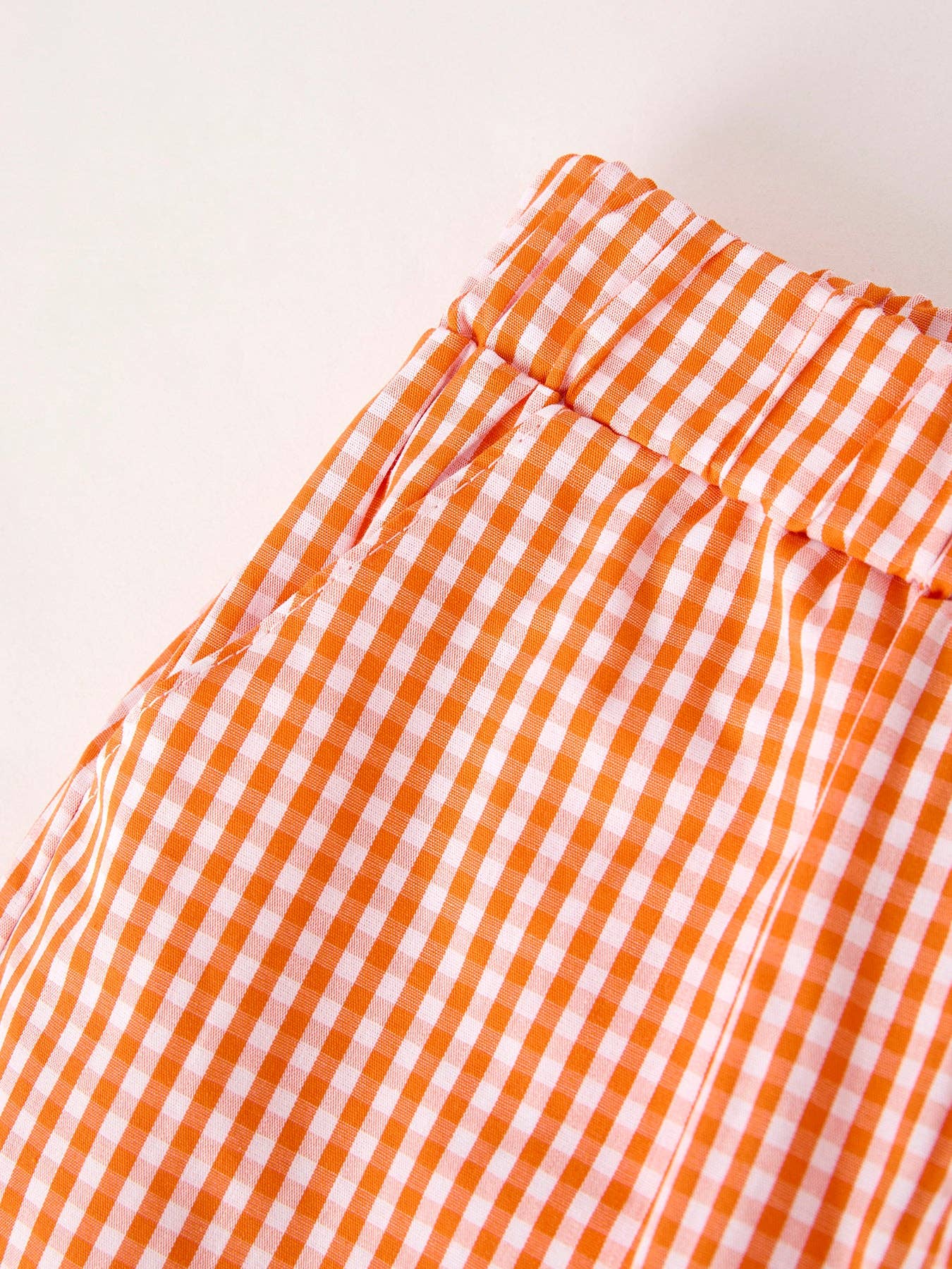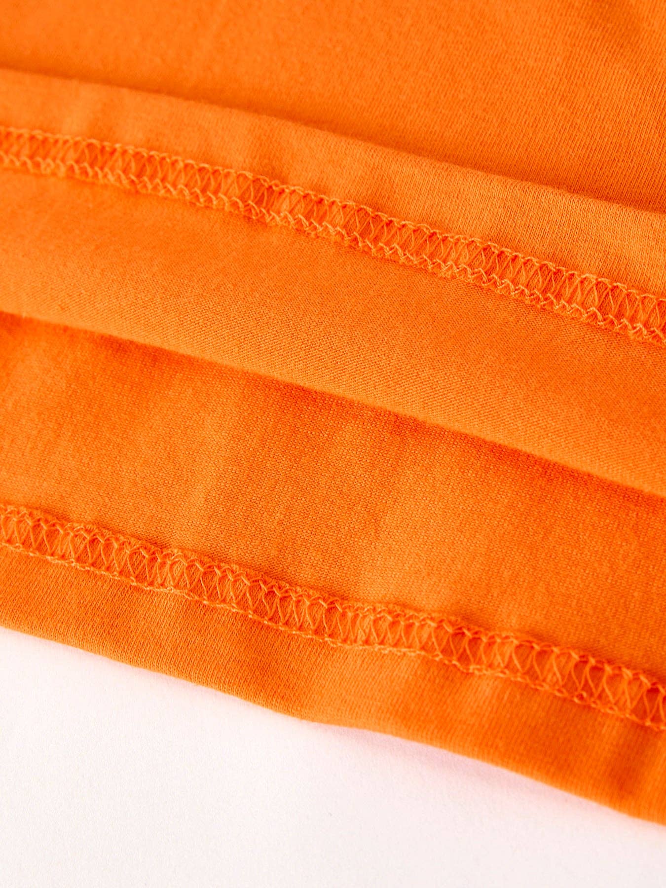 Bright, festive, and comfy for every Halloween plan. This two-piece set pairs a pumpkin-orange knit tee with a classic smocked panel—featuring a spider, jack-o’-lantern, ghost, and candy corn—plus coordinating orange-gingham pull-on pants. Soft, breathable fabric keeps him happy from classroom parties to trick-or-treat.