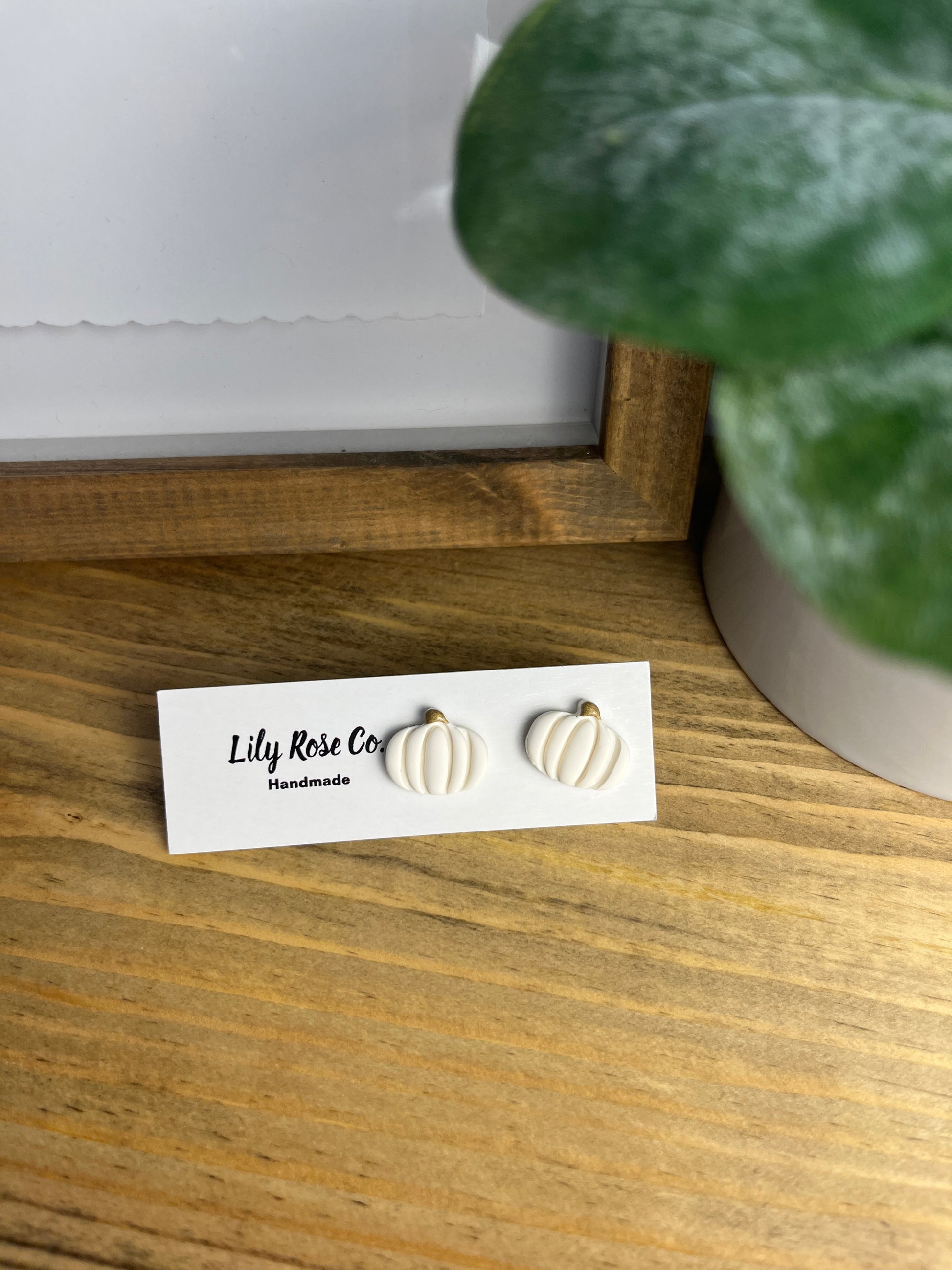 Matte cream pumpkins with soft contour detailing give The Hallie Studs a modern, minimalist feel. They’re an elevated fall staple — chic, clean, and perfect for neutral-lovers.