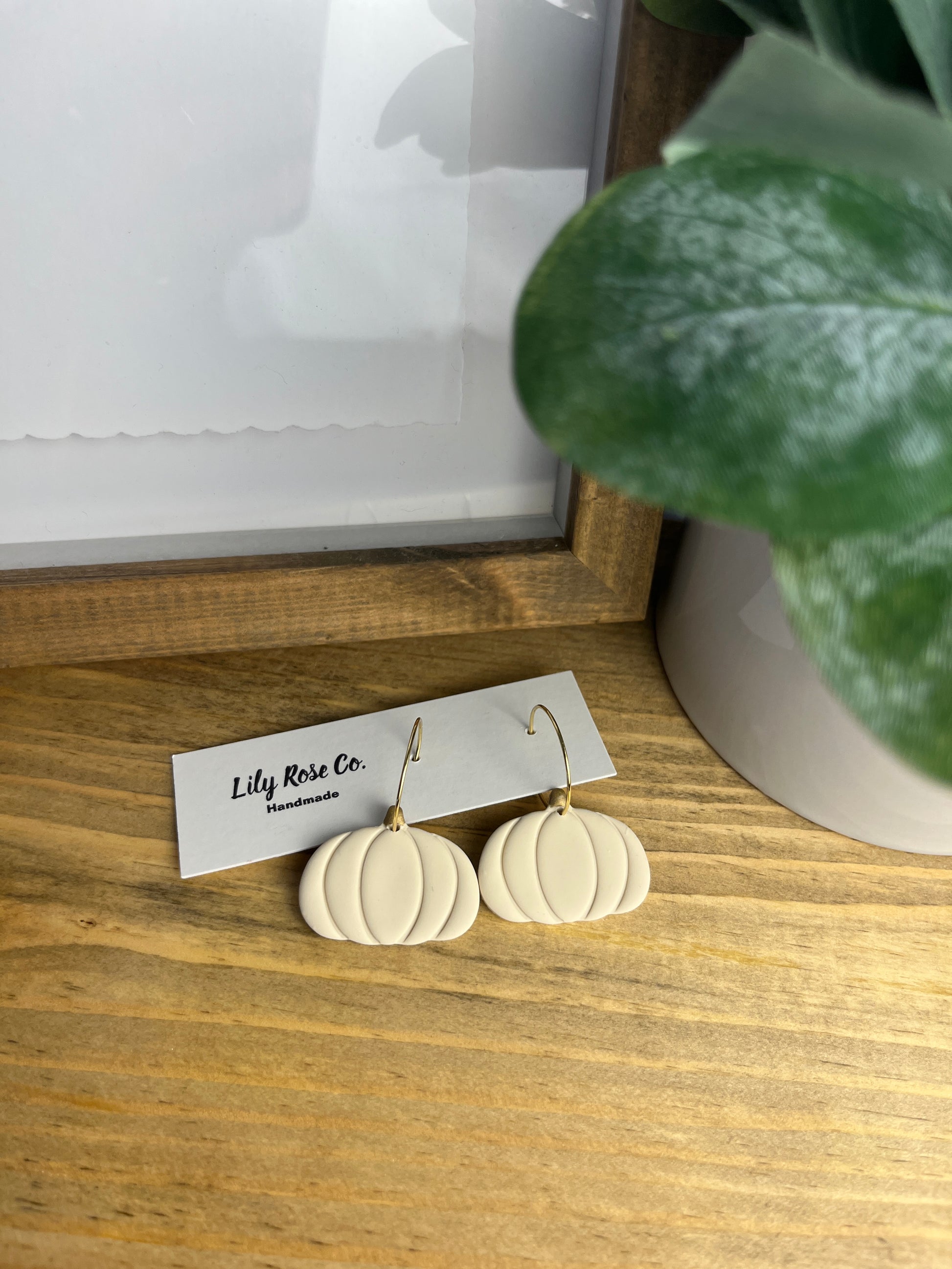 Soft, sculpted pumpkin charms in a warm cream tone hang from minimalist gold hoops, creating a look that’s both seasonal and sophisticated. The Maren Hoops bring a gentle autumn charm to any outfit — light, neutral, and effortlessly chic.