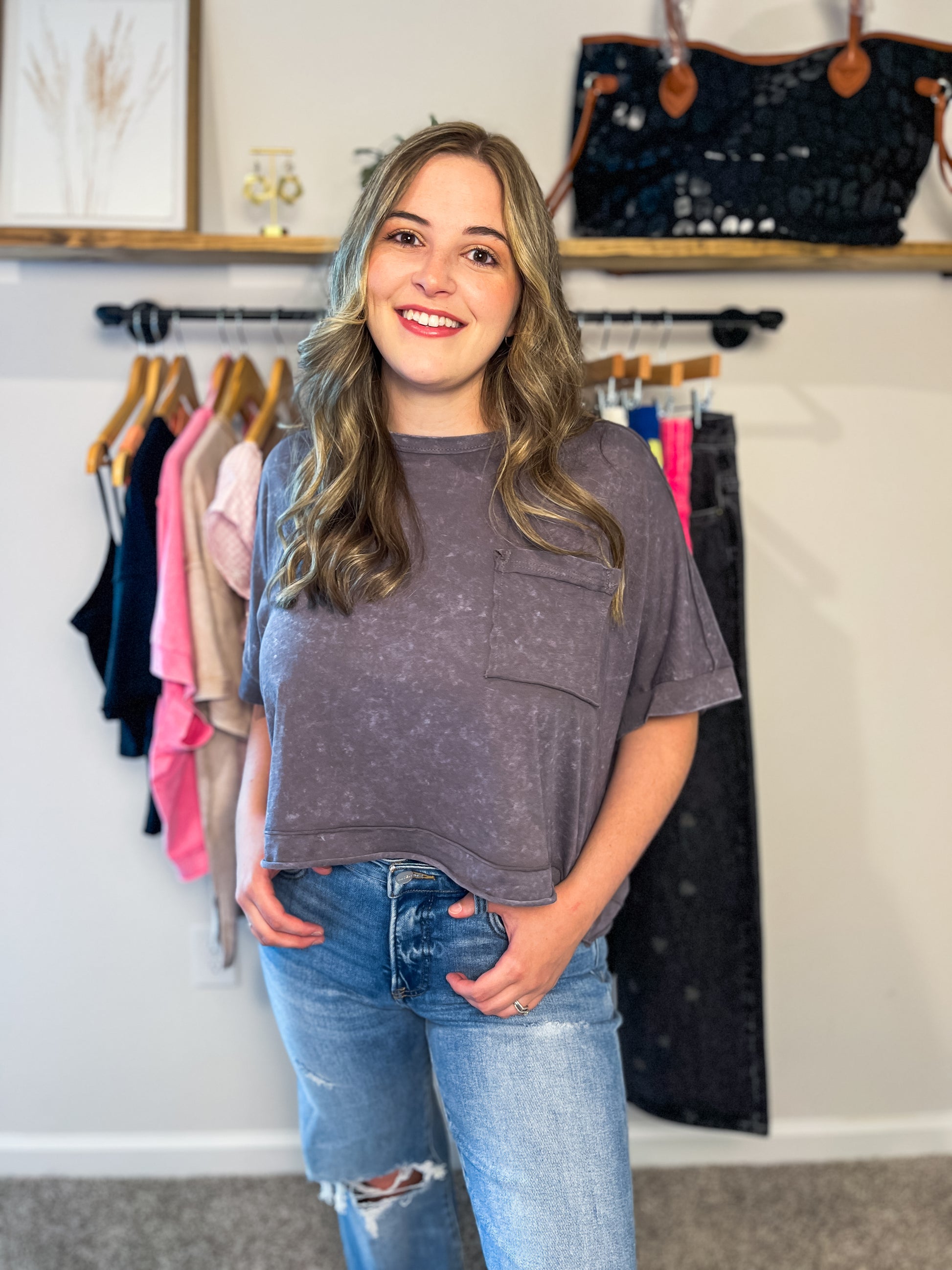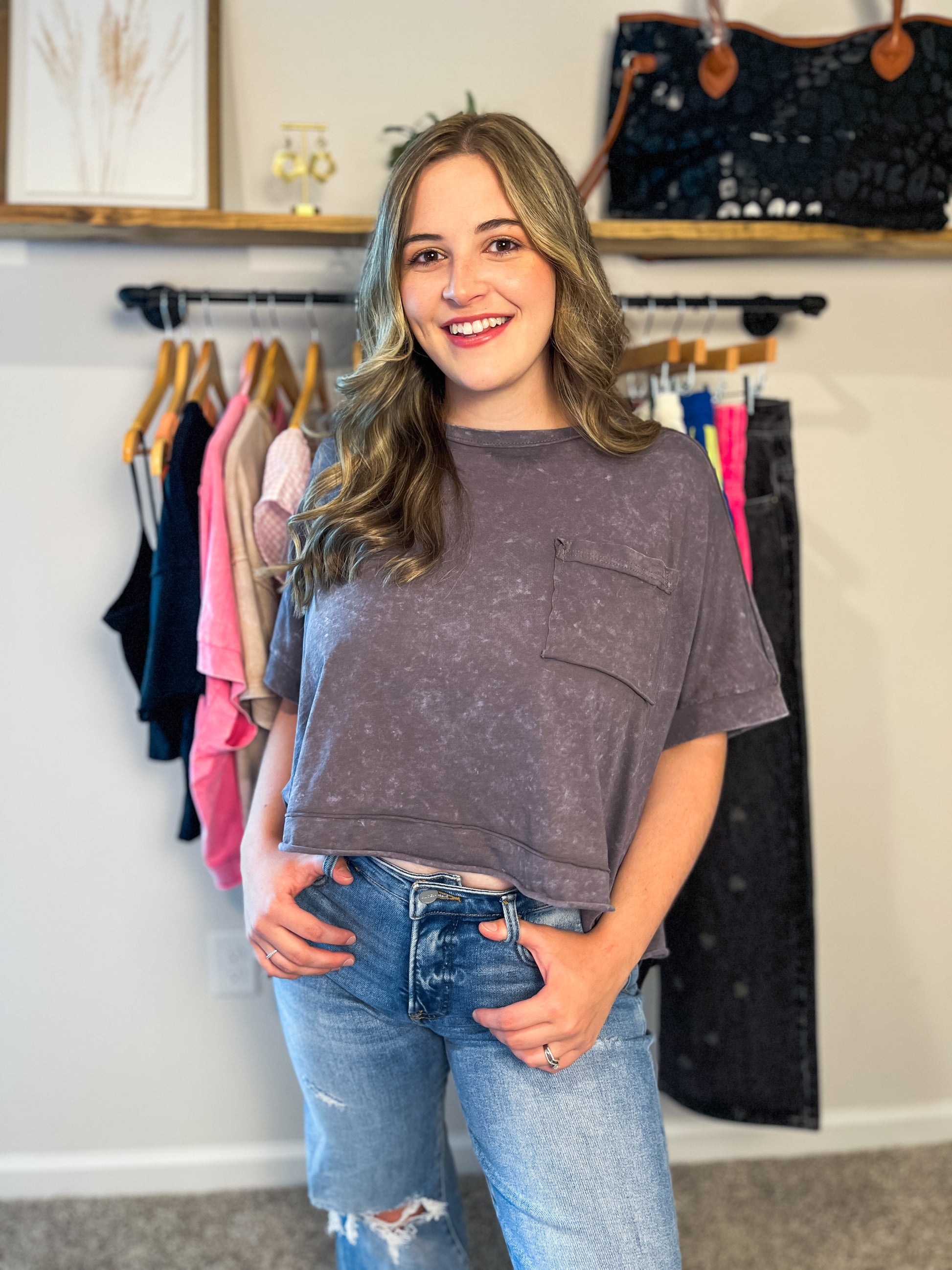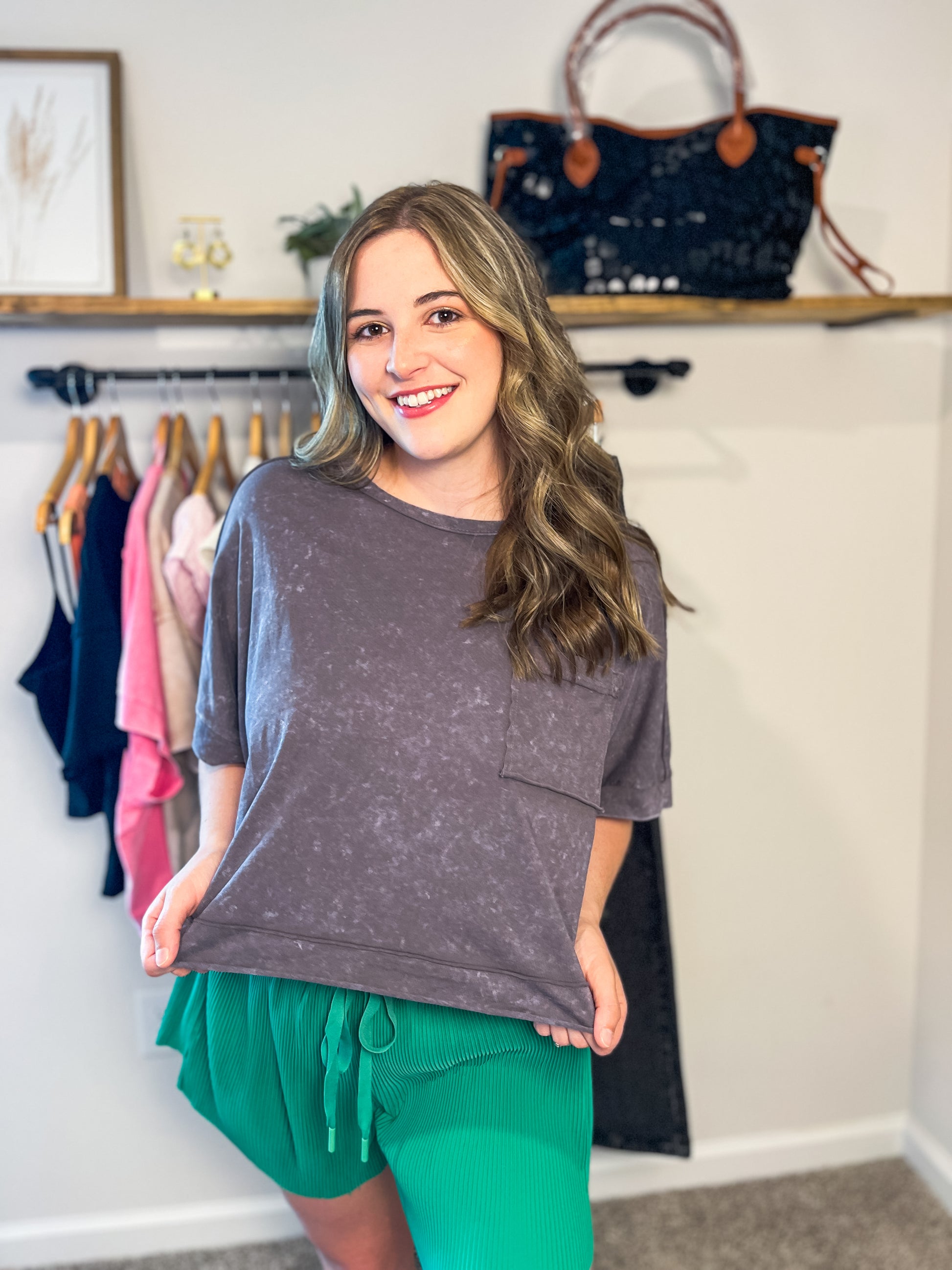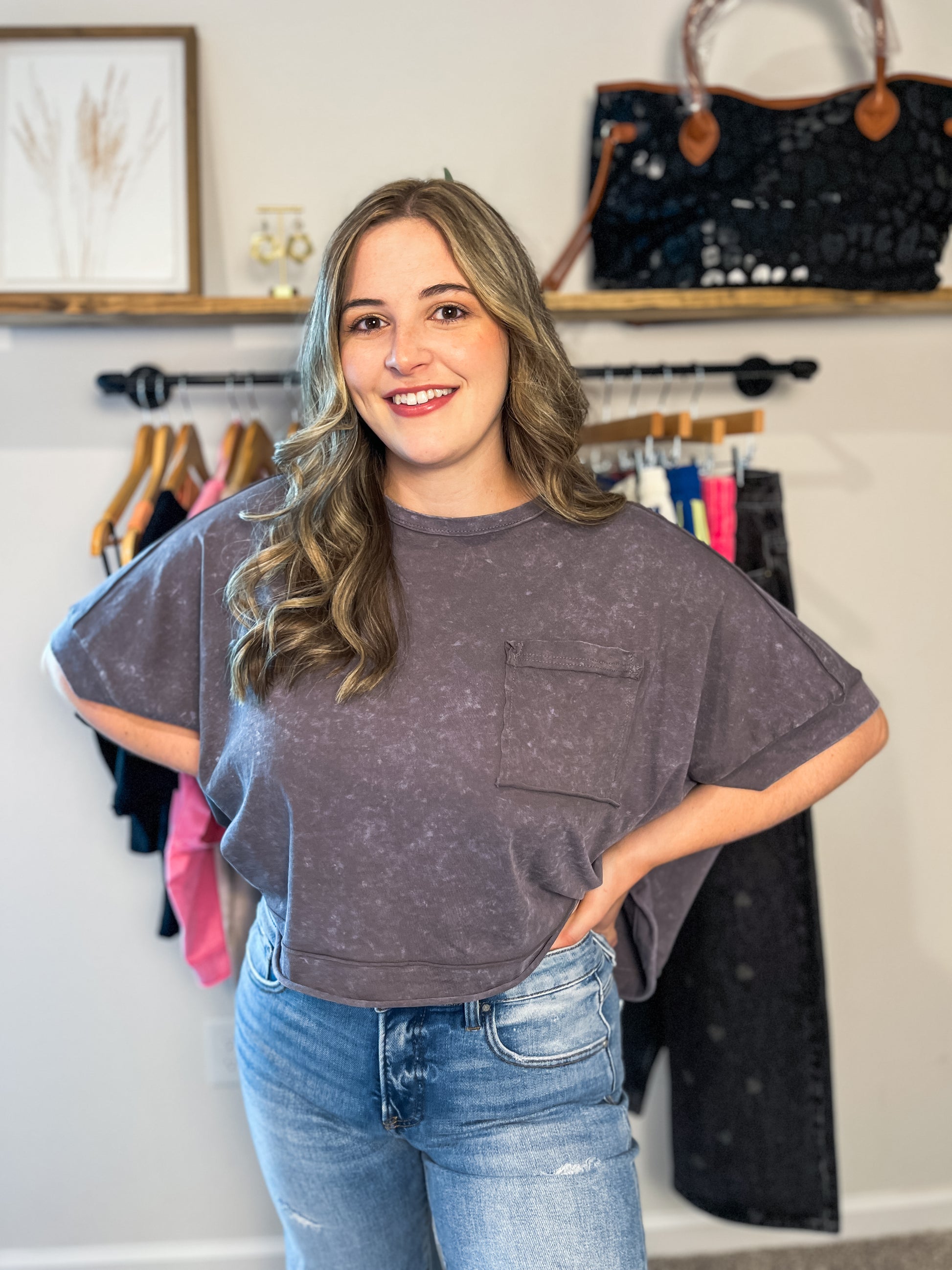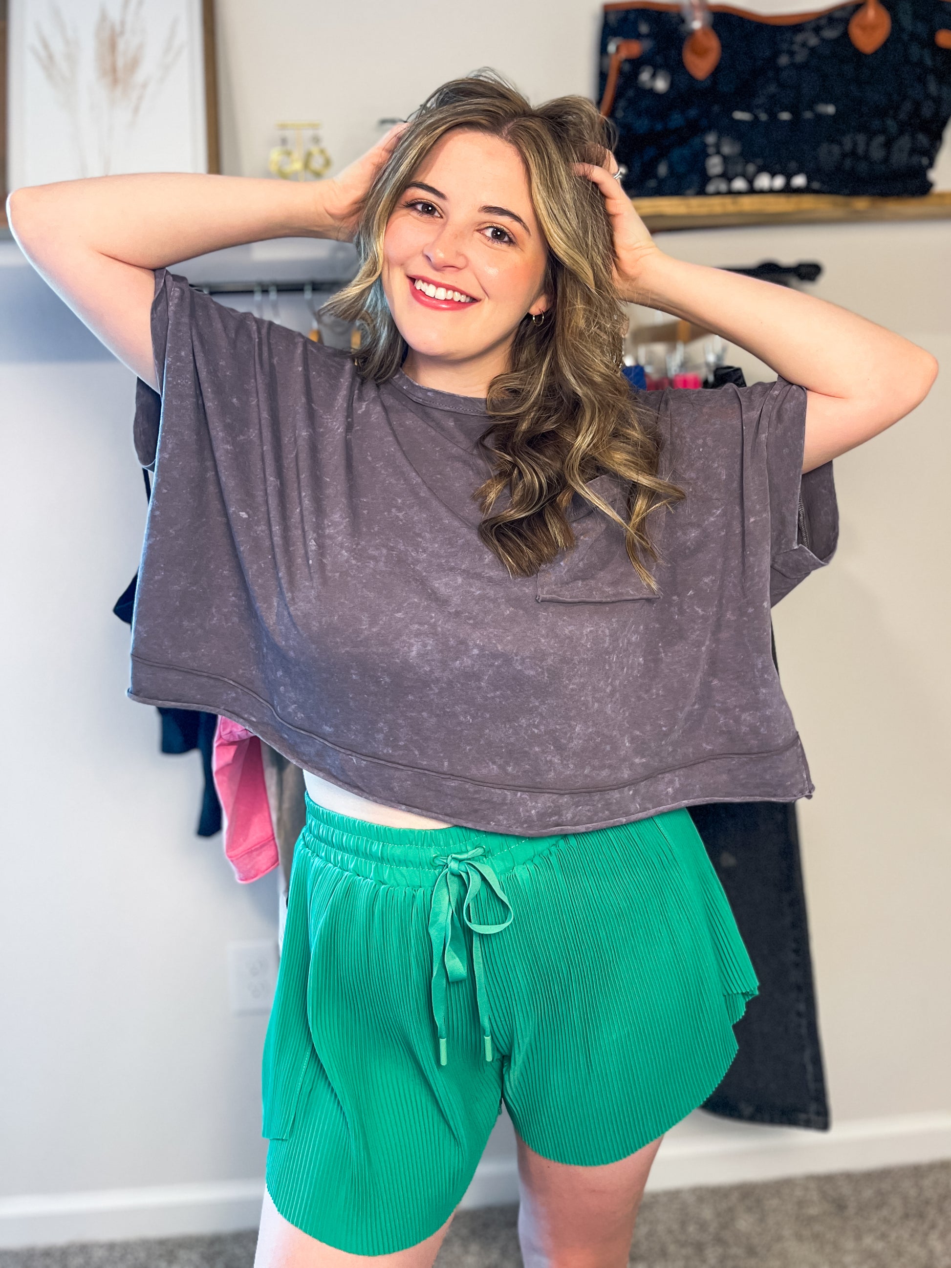 - Mineral Washed Oversized Crop Comfy Knit Top - Casual Comfy Spring Wardrobe Essential Style For Game Day - Basic Essential Washed Soft Knit Crop Top - Washed Soft Knit Top with Dolman Sleeve - Key Item of 90’s Activewear Fashion - Pink Girly Top Easy to Style with Casual Fit - Drop Shoulder - Short Sleeve - Patch Pocket - Round Neck - 100% COTTON